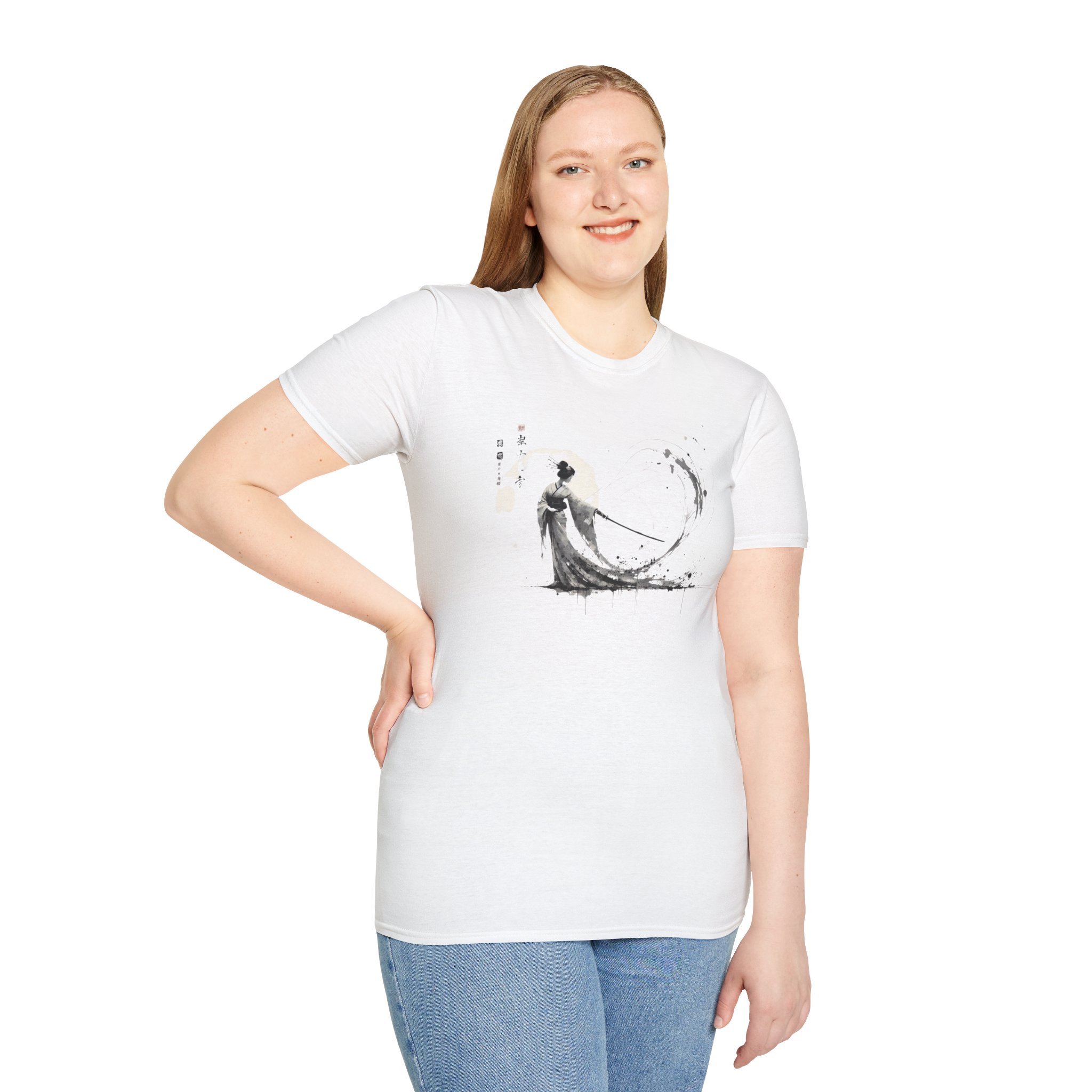 Artistic Samurai T-Shirt – Unisex Softstyle Tee Featuring Chinese Ink Painting, Art Lovers Gift, Casual Wear, Unique Fashion